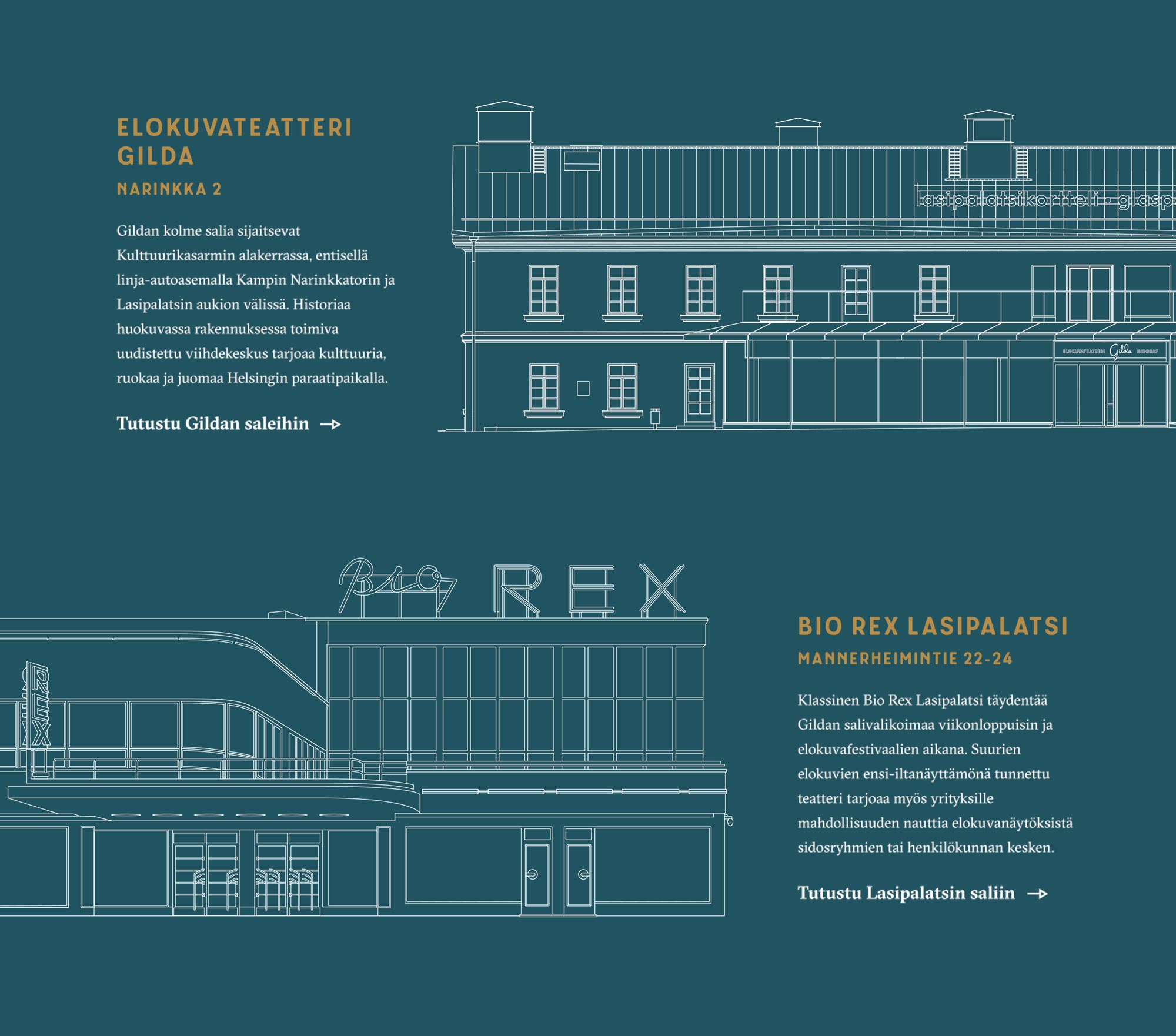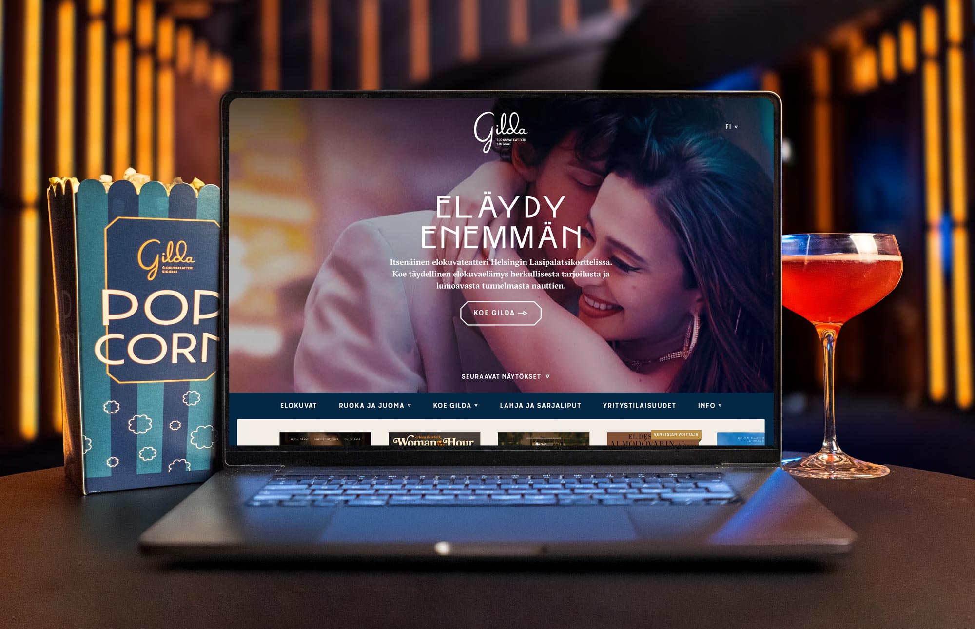 Elokuvateatteri Gilda avautui Kampin Lasipalatsikortteliin marraskuussa 2024. Itsenäinen kaupunkikino syntyi halusta tarjota Helsingin paraatipaikalla viimeisteltyjä ja ylellisiä elokuvaelämyksiä, joissa viihtyvyys kohtaa laadukkaan tekniikan, tarjoilun ja kuratoidun ohjelmiston.