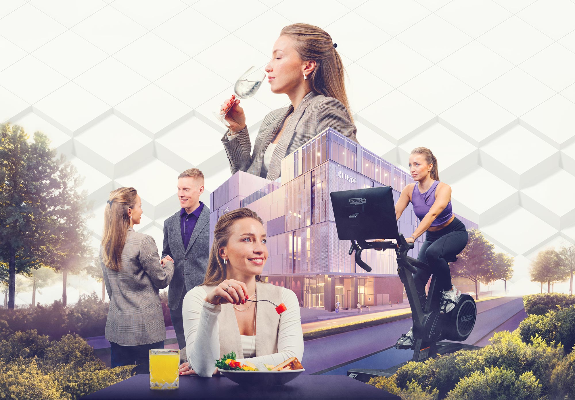Määrittelimme brändistrategian, jotta visuaalinen ja verbaalinen identiteetti noudattaisivat samaa linjaa. Hybridiarenan todettiin olevan hypen arvoinen elämyskeskus, joka yhdistää aktiivisen elämän parhaat puolet vastaiskuna konttorille ja kotisohvalle.