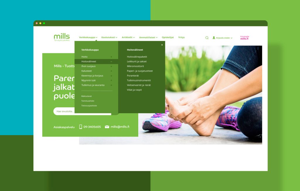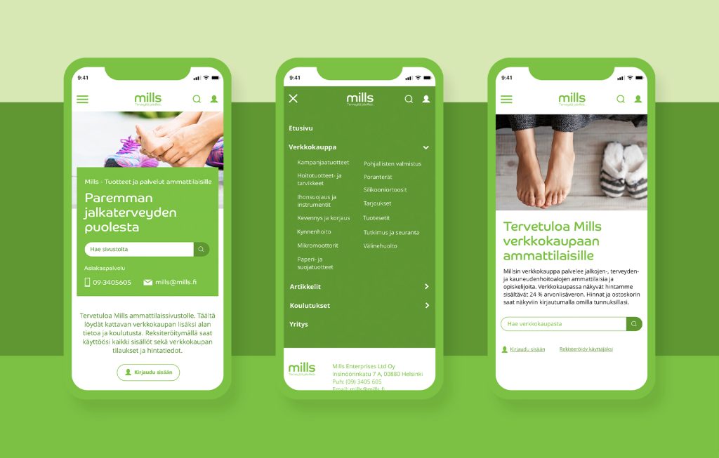 Vanha verkkokauppa uudistettiin modernilla WordPress WooCommerce -verkkokaupalla, joka räätälöitiin vastaamaan Millsin liiketoiminnallisia tarpeita. Verkkokaupassa hyödynnetään muun muassa ennakoivaa tilauksen luontia, suositteluja, kampanjoita, tuotetiedonhallintaa ja tiedon tarkempaa keräystä.