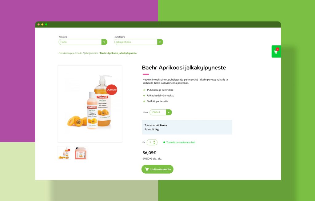 Verkkokauppaa ei oltu aiemmin integroitu asiakkaan kotimaiseen toiminnanohjausjärjestelmään, mikä hankaloitti tuotetietojen siirtoa ja datan seuraamista. Edessä oli siis haastava verkkokaupan ja toiminnanohjausjärjestelmän (ERP) integraatio.