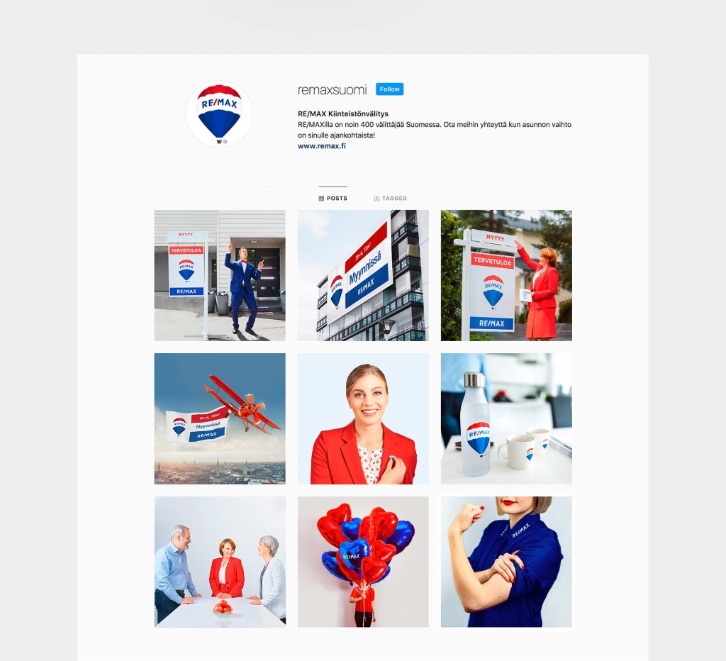 Päämäärämme RE/MAX Finlandin kanssa on ollut luoda raikas ja lähestyttävä visuaalinen ilme markkinointiin, joka erottuu kilpailijoista ystävällisyydellään. RE/MAXilla oli tarve saada markkinointiin vahva kattokonsepti, jonka alla tekeminen on yhtenäistä läpi organisaation.